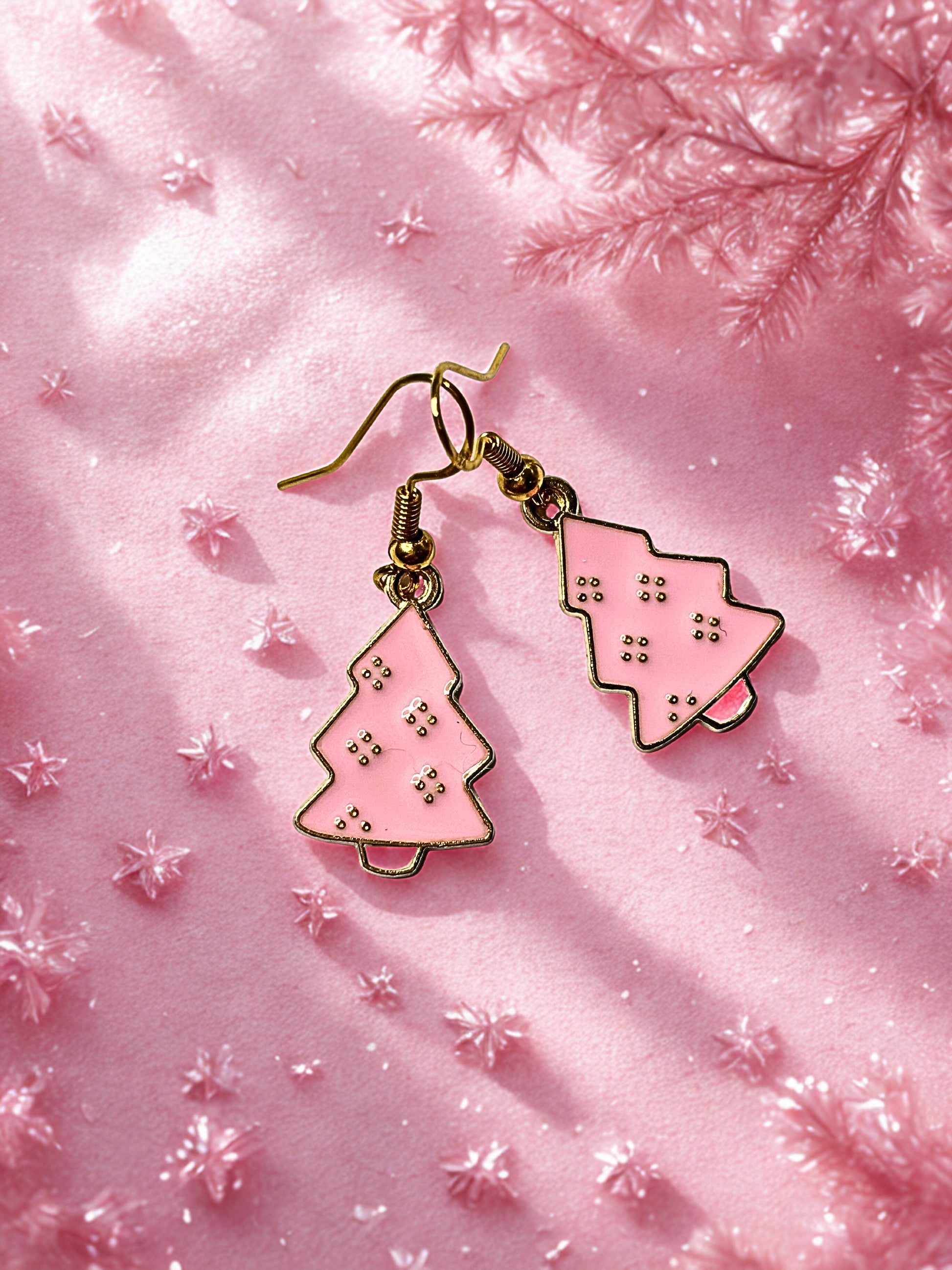 Add a soft festive shimmer to your season with these pretty pink Christmas tree earrings. Each pair is made from enamel and alloy with a warm gold-tone finish, giving them a delicate sparkle that’s perfect for winter outfits, gifting, or adding a little magic to your Christmas celebrations.